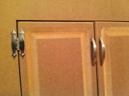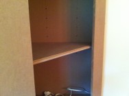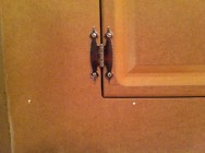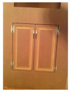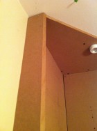 I wouldn’t use solid MDF doors for kitchen cabinets that you’ll be using every day because the corners dent relatively easily, but most likely we’ll rarely be opening this cabinet. We’ll probably store some nice china and table cloths in there, so no problem using a somewhat fragile door here.